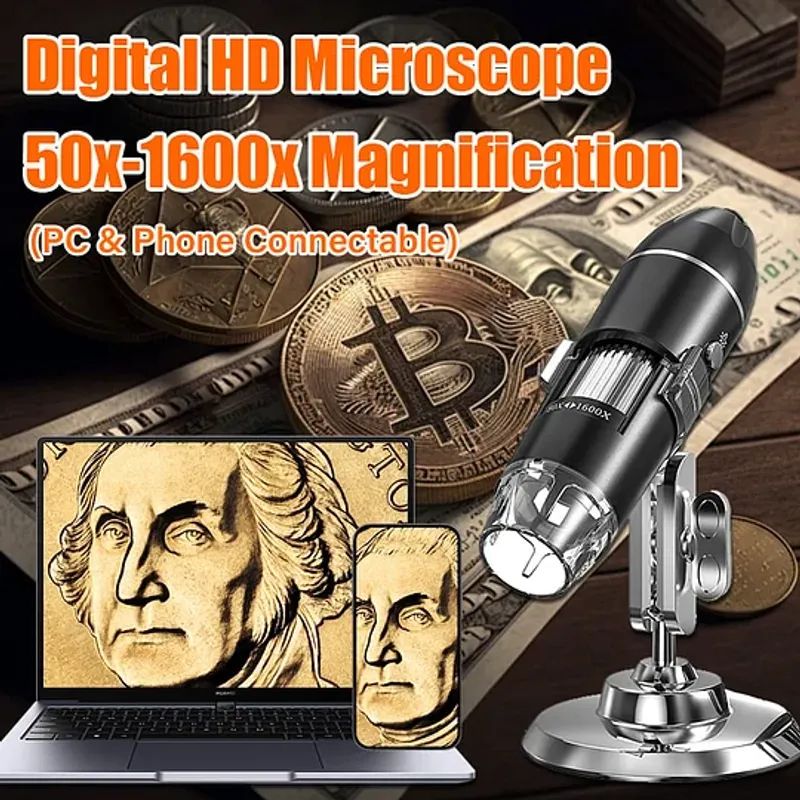 - USB digital microscope offers 50x to 1000x / 50x to 1600x magnification allows you to clearly view the smallest details of your specimen.